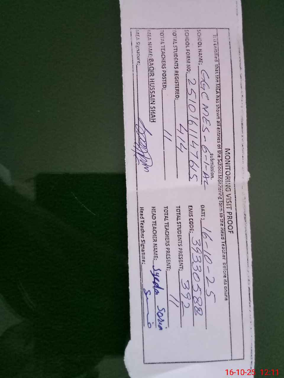 | EMIS Code: 39330588 | Name of School: GGCMES 6-1AL | |||