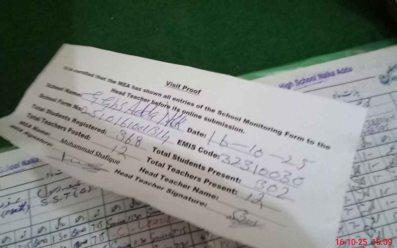 | EMIS Code: 32310030 | Name of School: GGHS ADDA NALKA | |||