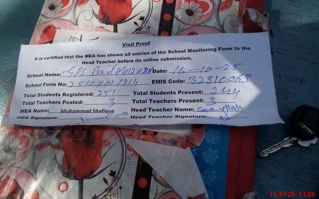 | EMIS Code: 32310063 | Name of School: GPS BAIT MOIZ UD DIN | |||