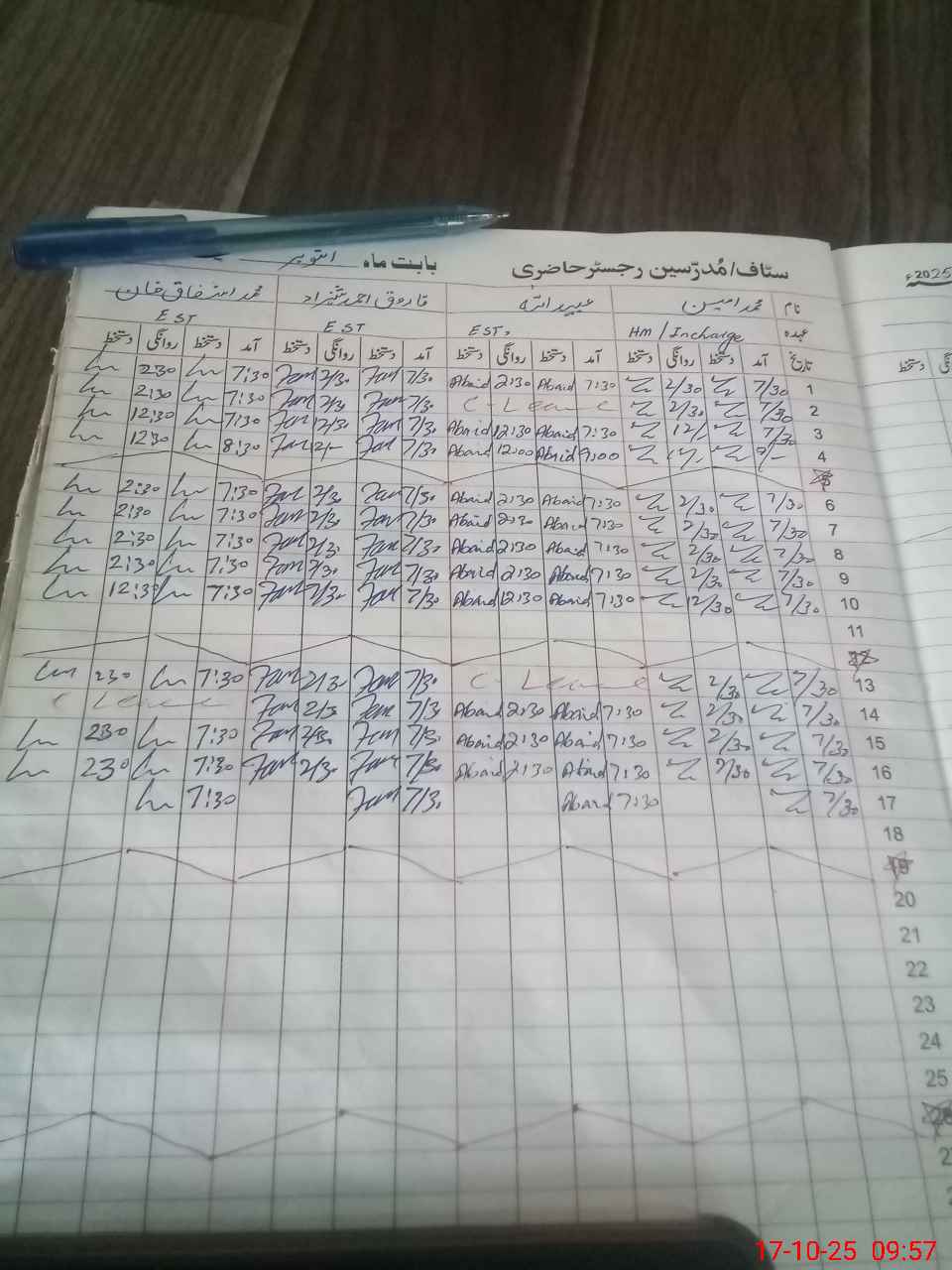 | CNIC | Full Name | Designation | R/C | Absence during last cal. month |