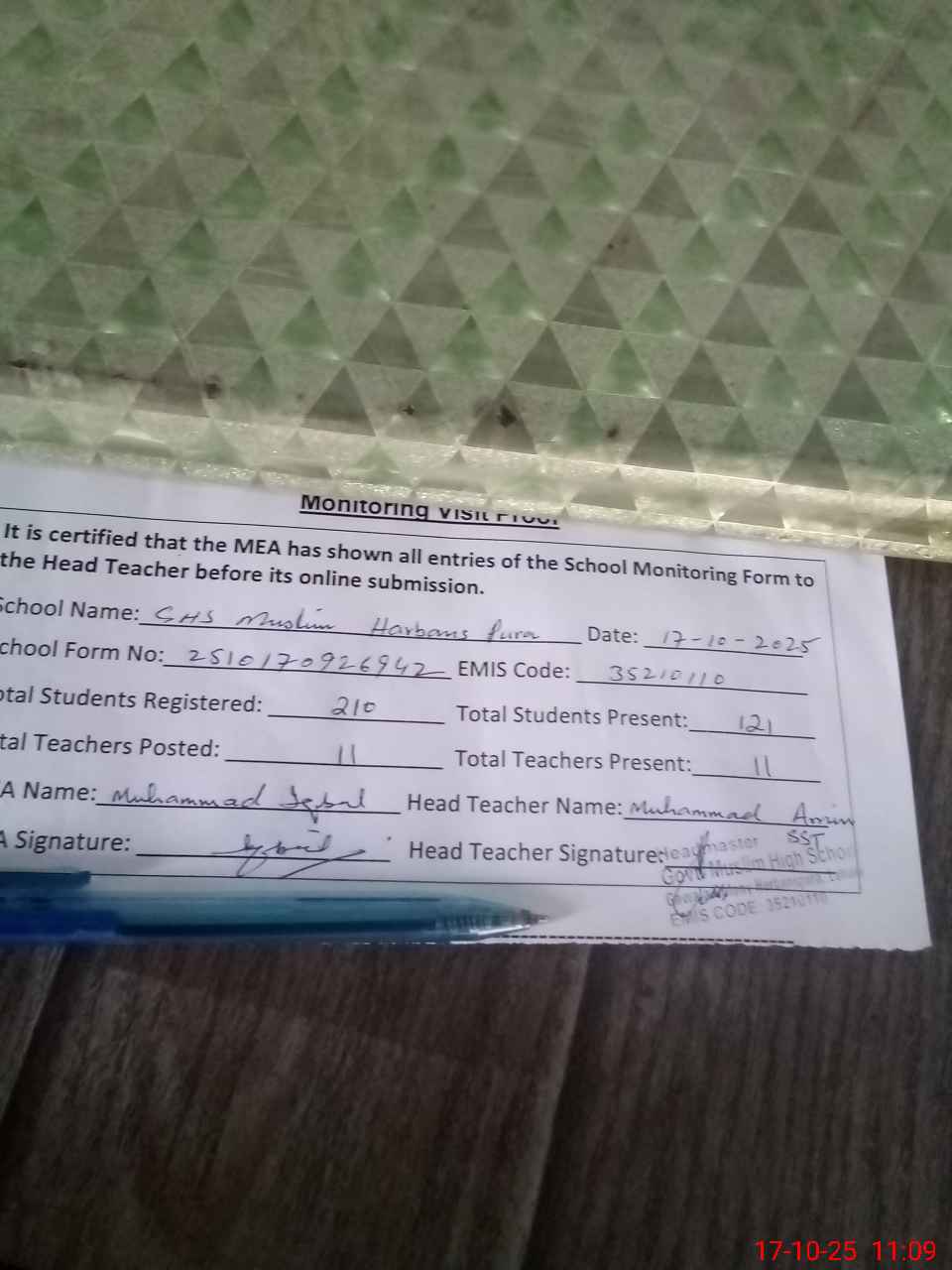 | EMIS Code: 35210110 | Name of School: GHS MUSLIM HARBANS PURA(Newly upgraded) | |||