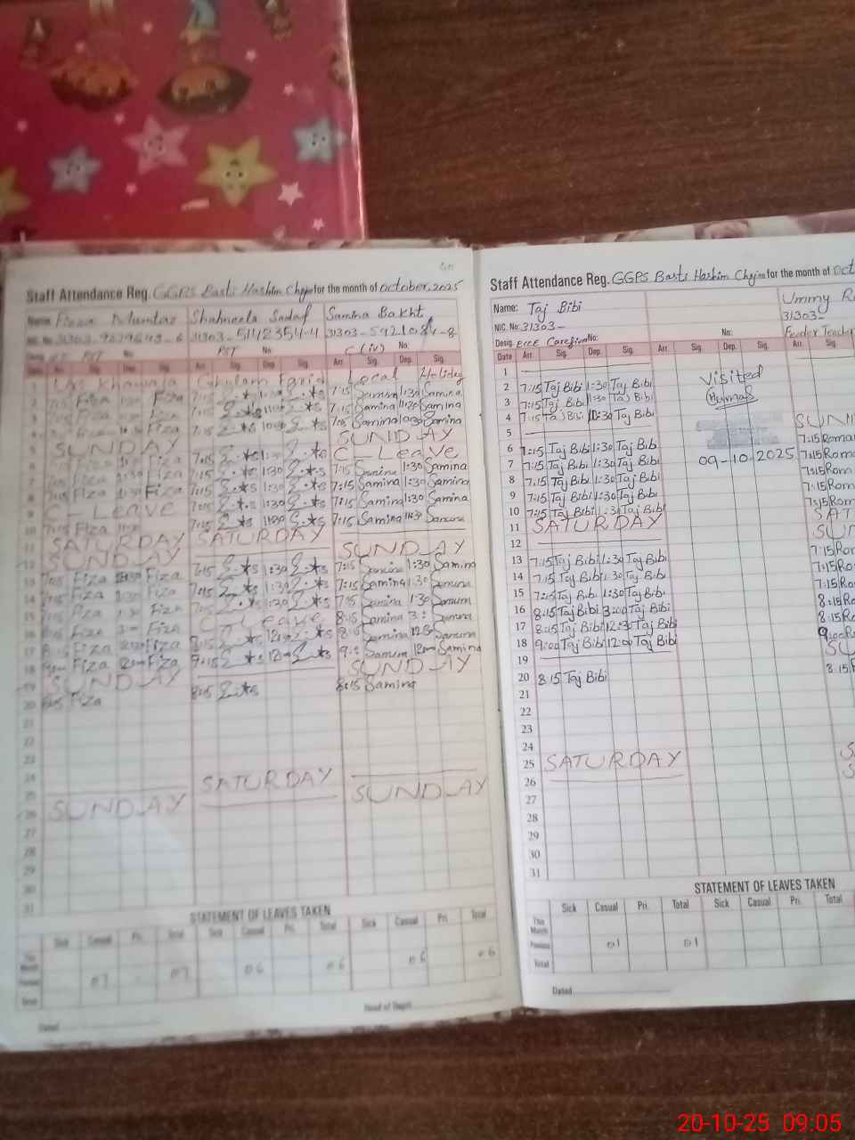 | CNIC | Full Name | Designation | R/C | Absence During Last Calender Month |