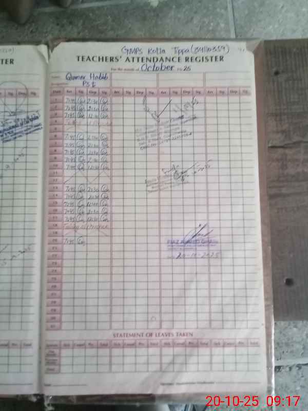 | Remarks (Use Separate Page if Required): Attendance of teaching staff on SIS Software is updated but students attendance on SIS Software is not updated at the time of visit Data as per provided by School Staff and found during physical visit | |||||