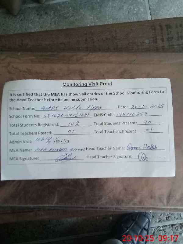 | EMIS Code: 34110359 | Name of School: GMPS KOTLA TIPPA | |||