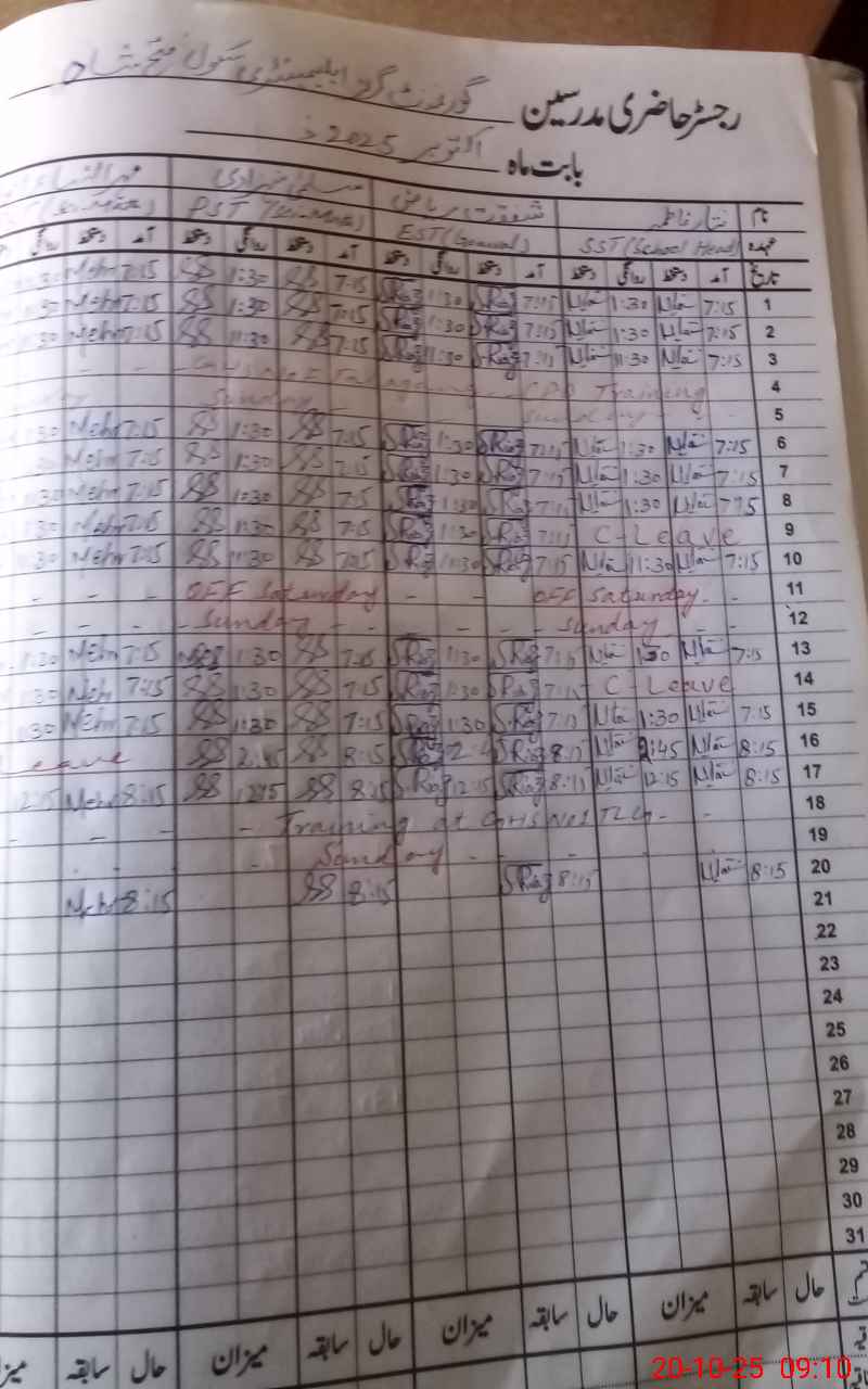 | CNIC | Full Name | Designation | R/C | Absence During Last Calender Month |