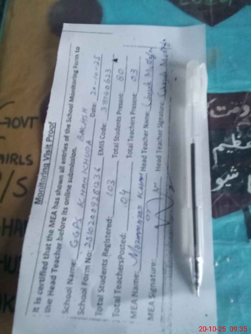 | EMIS Code: 38140623 | Name of School: GGPS KHAN KHUDA BUKHSH | |||