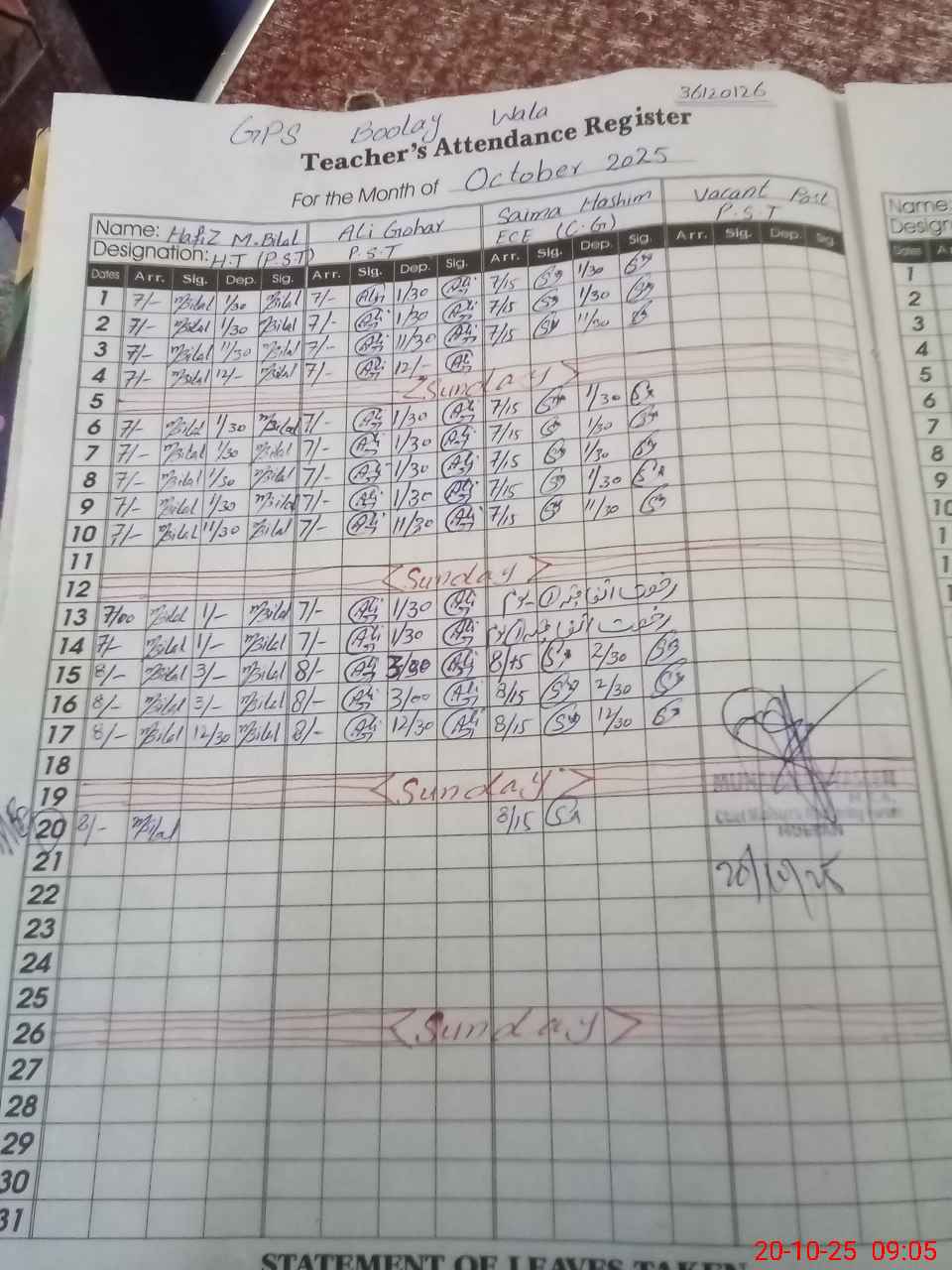 | EMIS Code: 36120126 | Name of School: GPS BOOLAY WALA P/O KOTLI NIJABAT | |||
