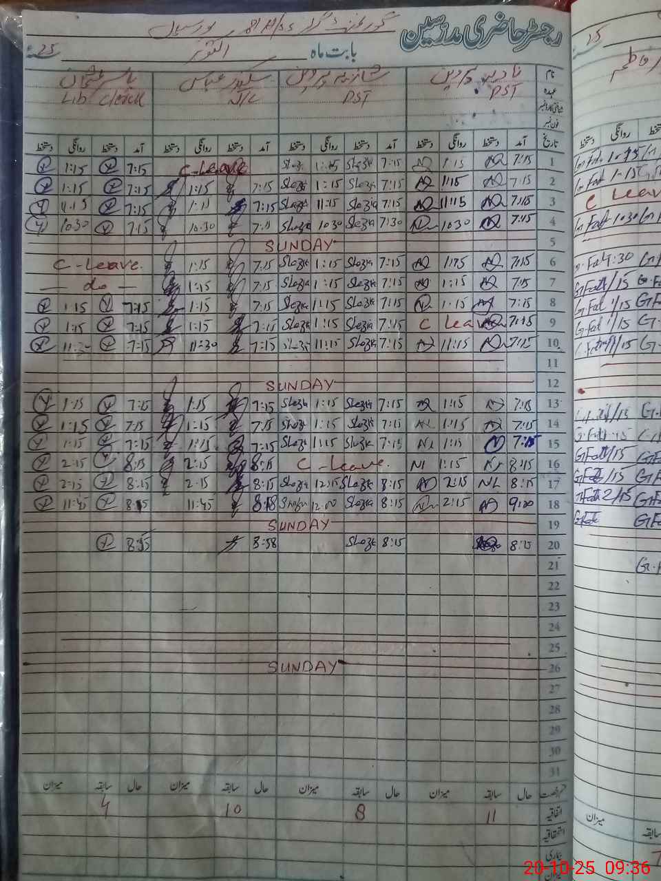| CNIC | Full Name | Designation | R/C | Absence During Last Calender Month |