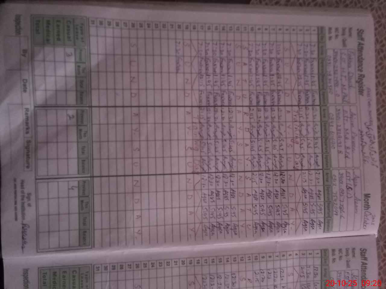 | CNIC | Full Name | Designation | R/C | Absence During Last Calender Month |