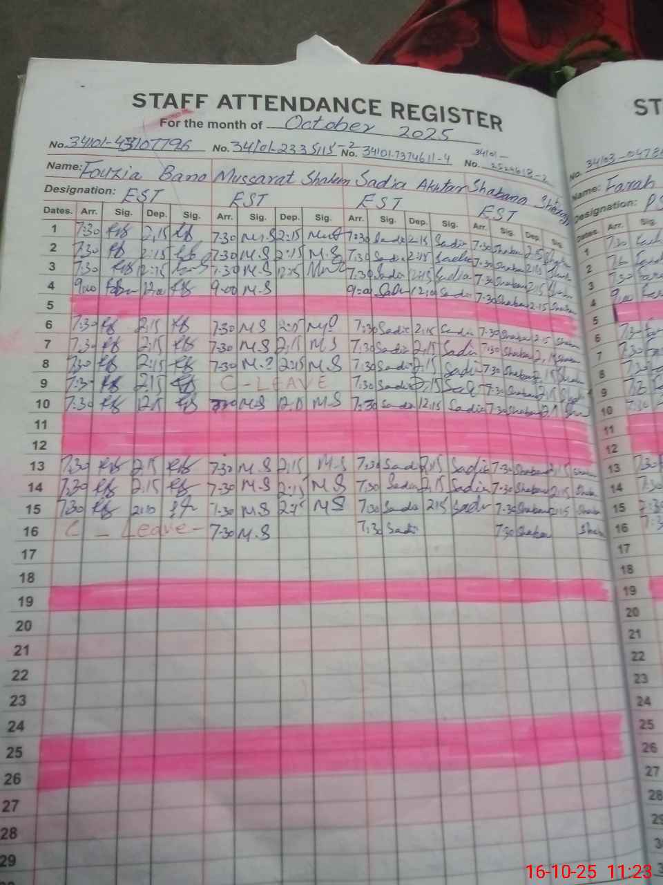 | CNIC | Full Name | Designation | R/C | Absence During Last Calender Month |