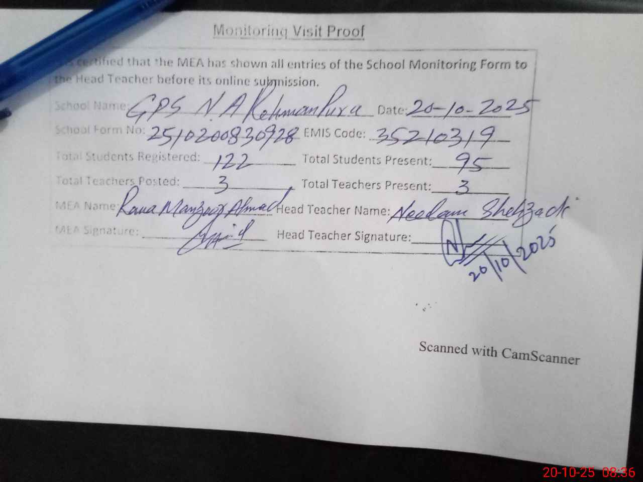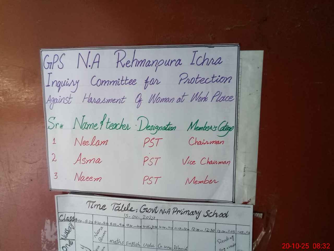 | EMIS Code: 35210319 | Name of School: GPS NA REHMAN PURA | |||