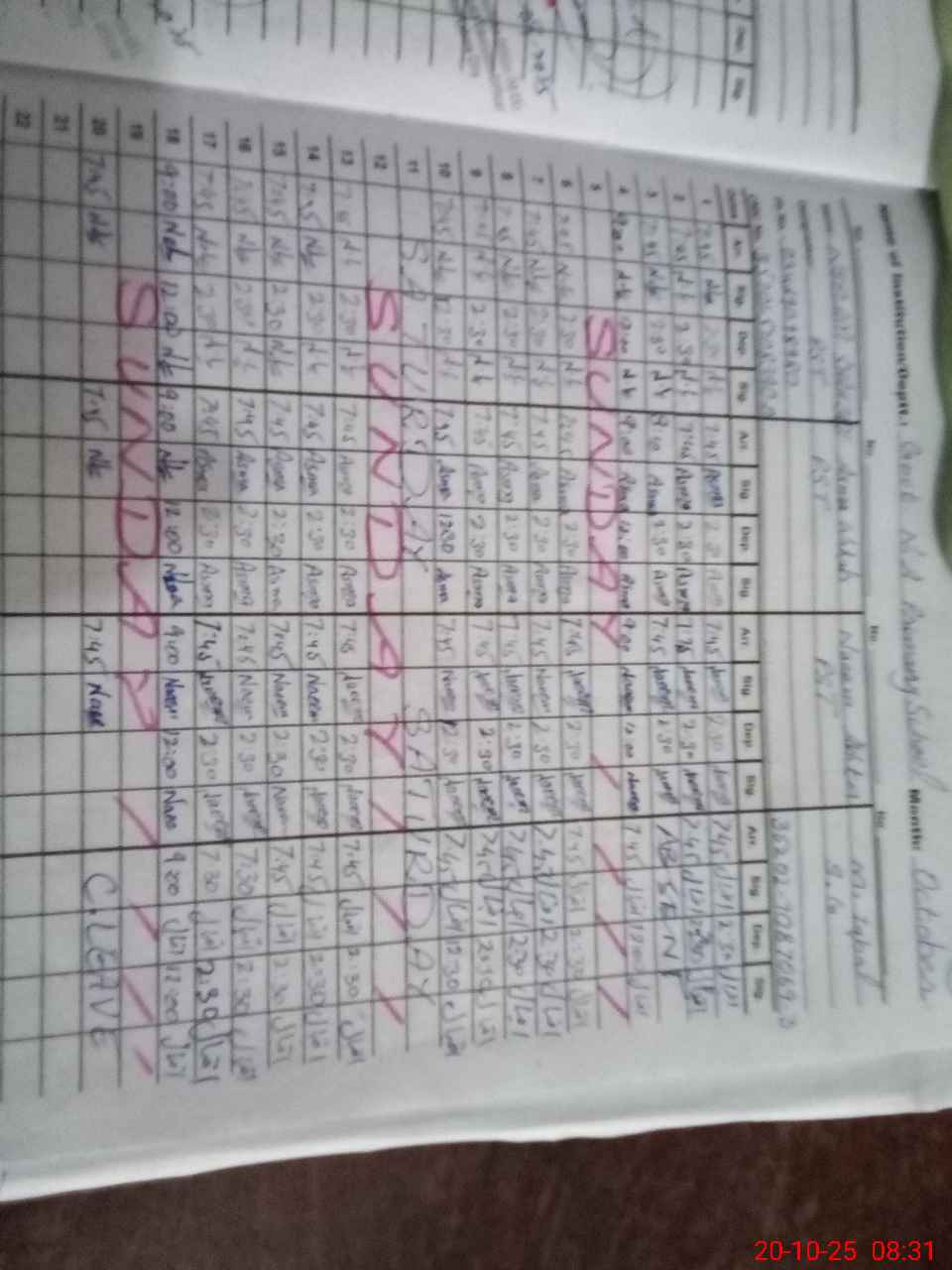| 35**** | Sh**** An**** | SWP | Regular | 0 | 0 | 30 | 0 | 0 | 0 | 0 | 0 | 0 | Absent (Un-Authorized) |