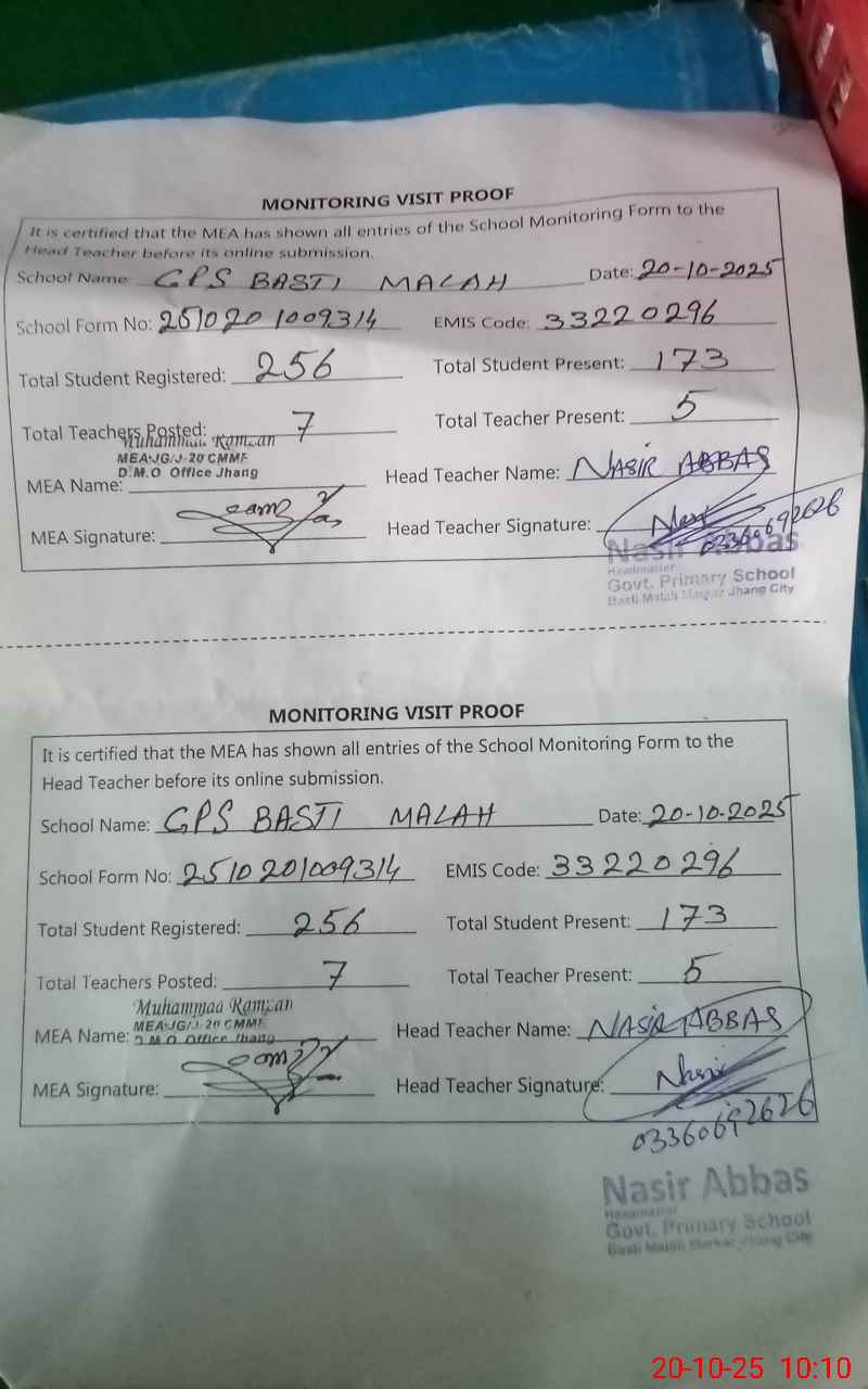 | EMIS Code: 33220296 | Name of School: GPS BASTI MALAH | |||