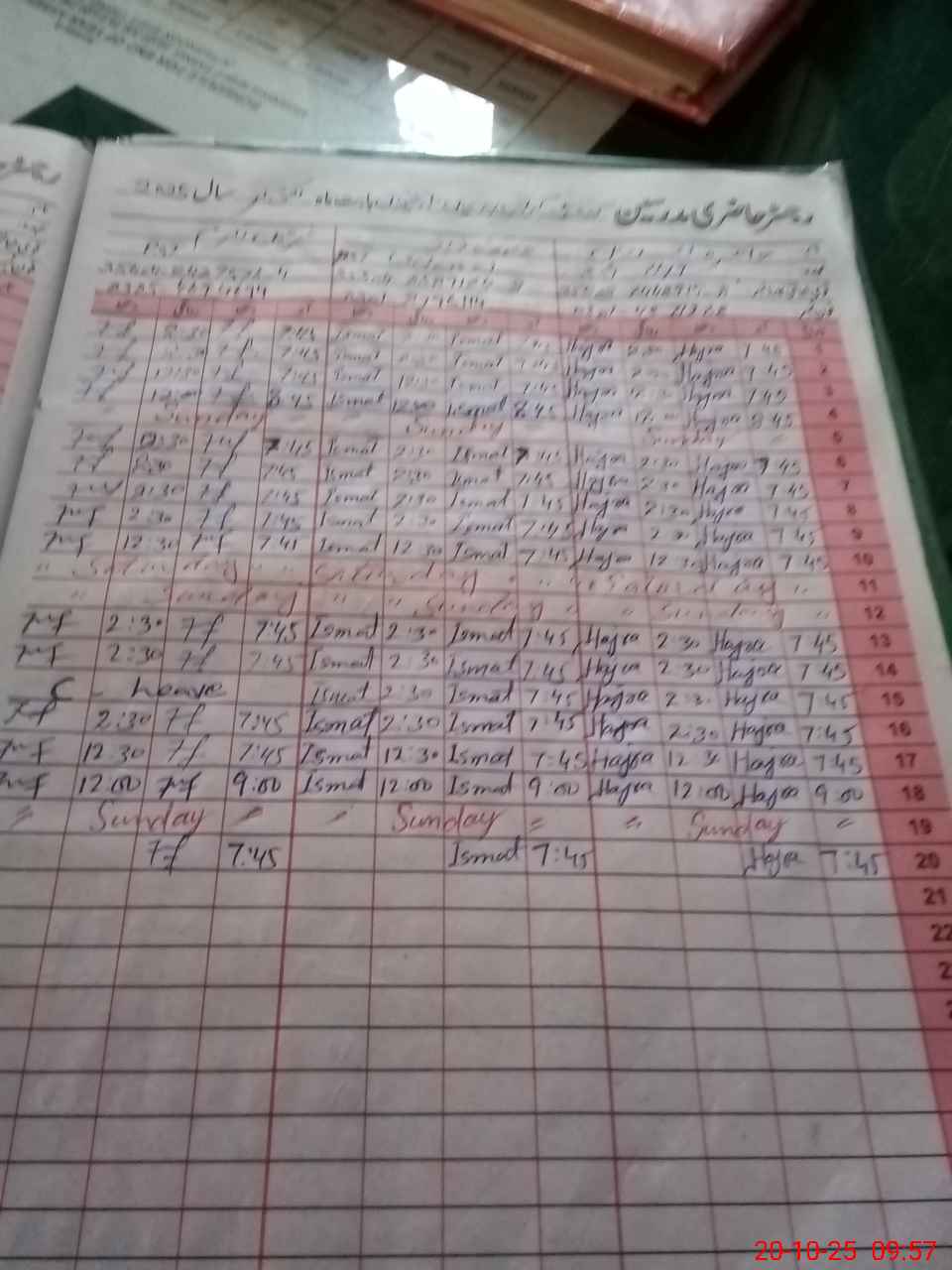 | CNIC | Full Name | Designation | R/C | Absence During Last Calender Month |