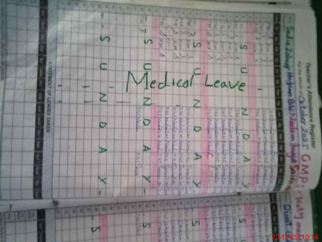 | Leave | Duty | Absent | Maternity | Medical | Ex- Pak |