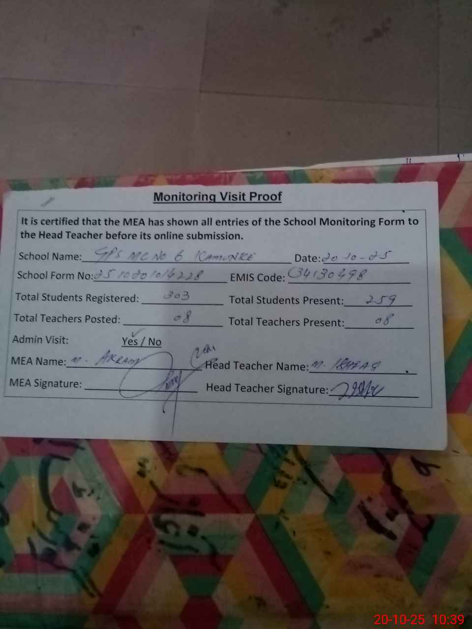 | EMIS Code: 34130498 | Name of School: GPS MC NO.06 KAMOKE | |||