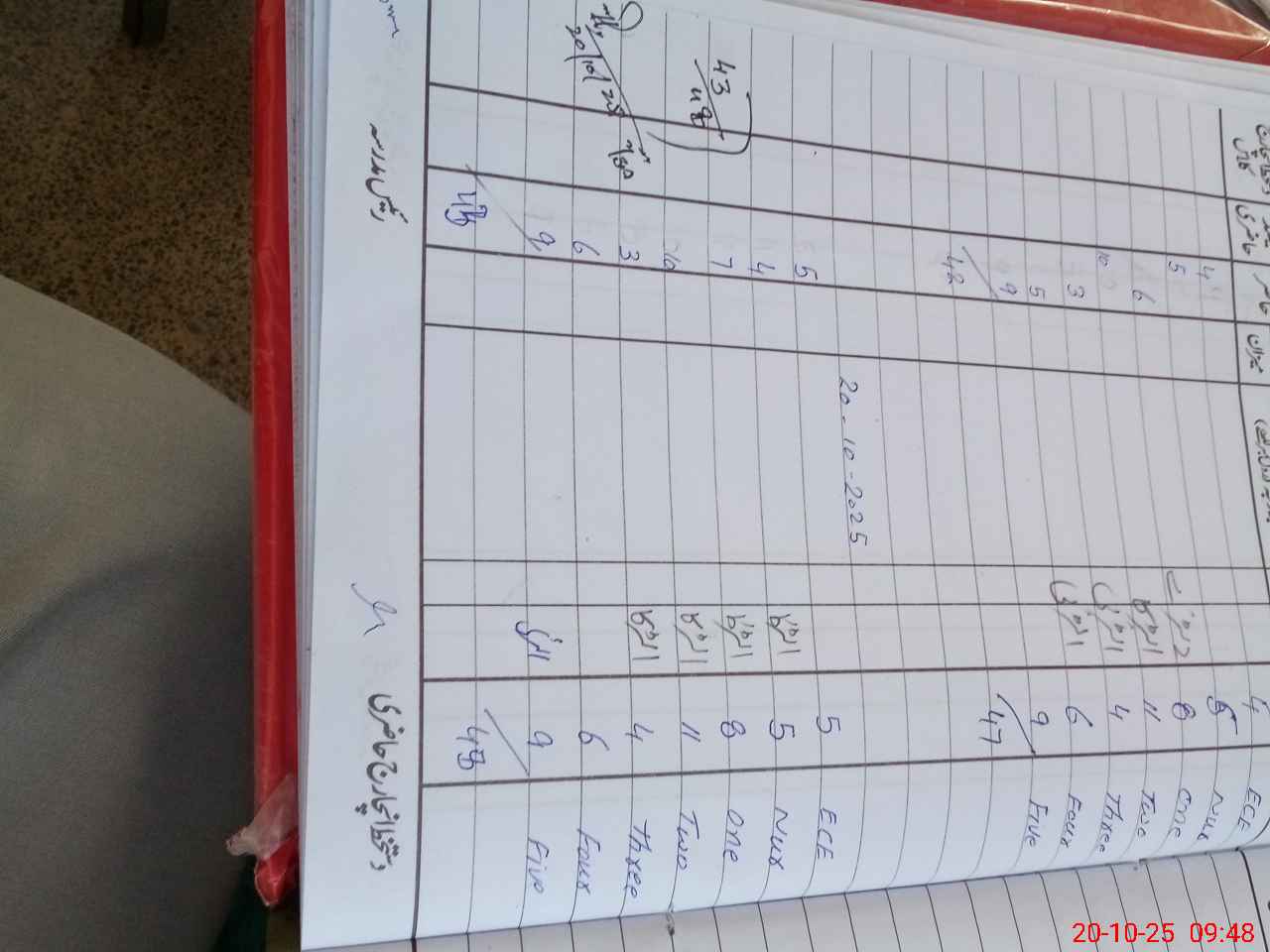 | Total Students Present | 5 | 0 | 4 | 7 | 10 | 3 | 6 | 8 | 43 | |||||||