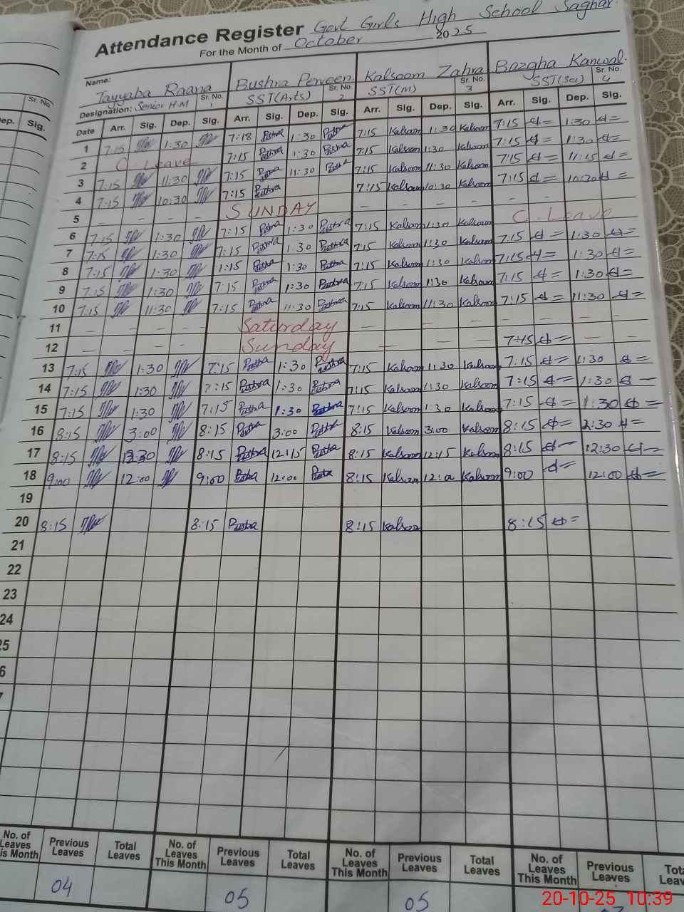 | Leave | Duty | Absent | Maternity | Medical | Ex- Pak |