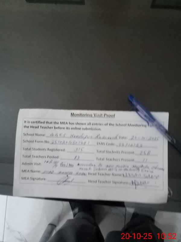 | Attendance Register | Head Teacher | MEA with School | Visit Proof |