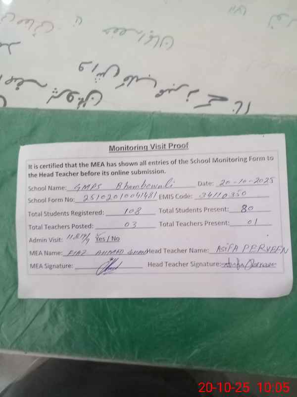 | EMIS Code: 34110350 | Name of School: GMPS BHAMBO WALI | |||