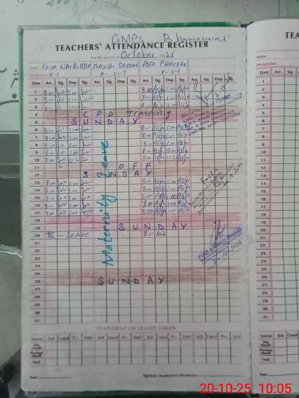 | Remarks (Use Separate Page if Required): Attendance of teaching staff and students on SIS Software is not updated D3 Form and Free Books Record Register is not available at the time of visit due to Head Teacher on Causal Leave Data as per provided by School Staff and found during physical visit | |||||