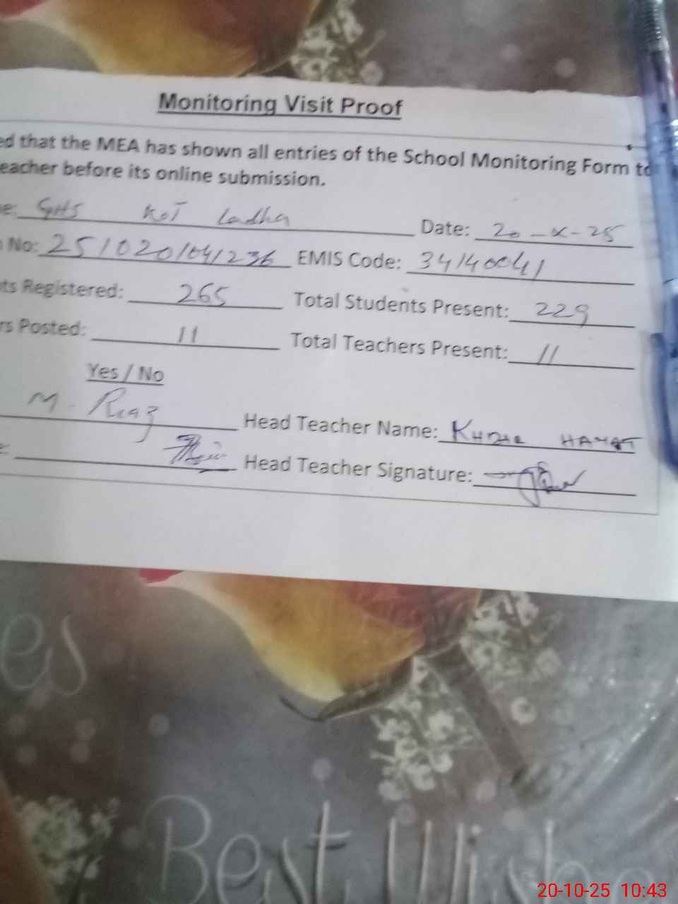 | EMIS Code: 34140041 | Name of School: GHS KOT LADHA | |||
