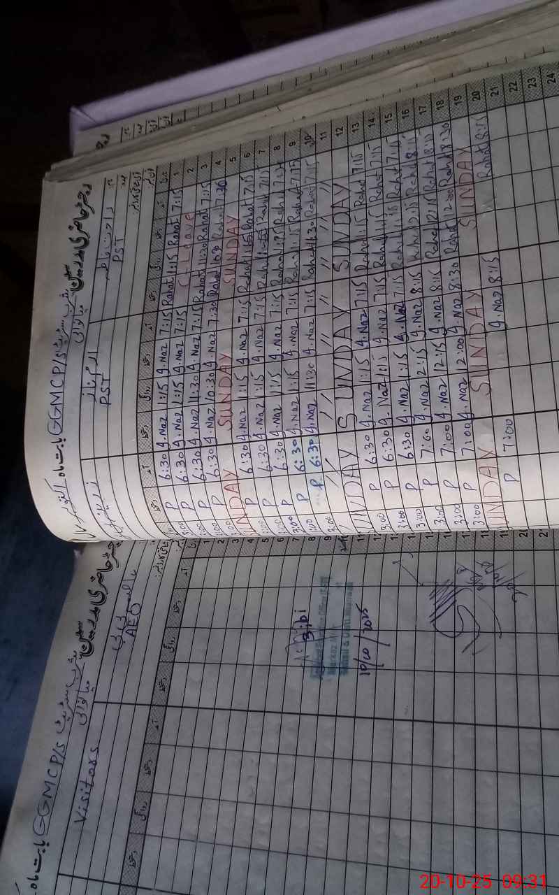 | Total no. of Classrooms: 8 No. of Classrooms Used for Teaching: 7 No. of Classrooms Storing Old Furniture, FTBs, etc: 0Comments if Any: PST Raheela working in this school as a temporary teacher from other School |