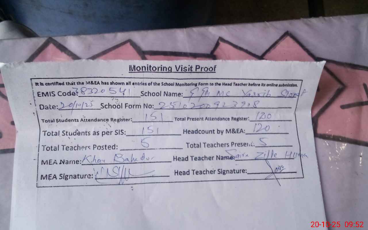 | Attendance Register | Head Teacher | MEA with School | Visit Proof |