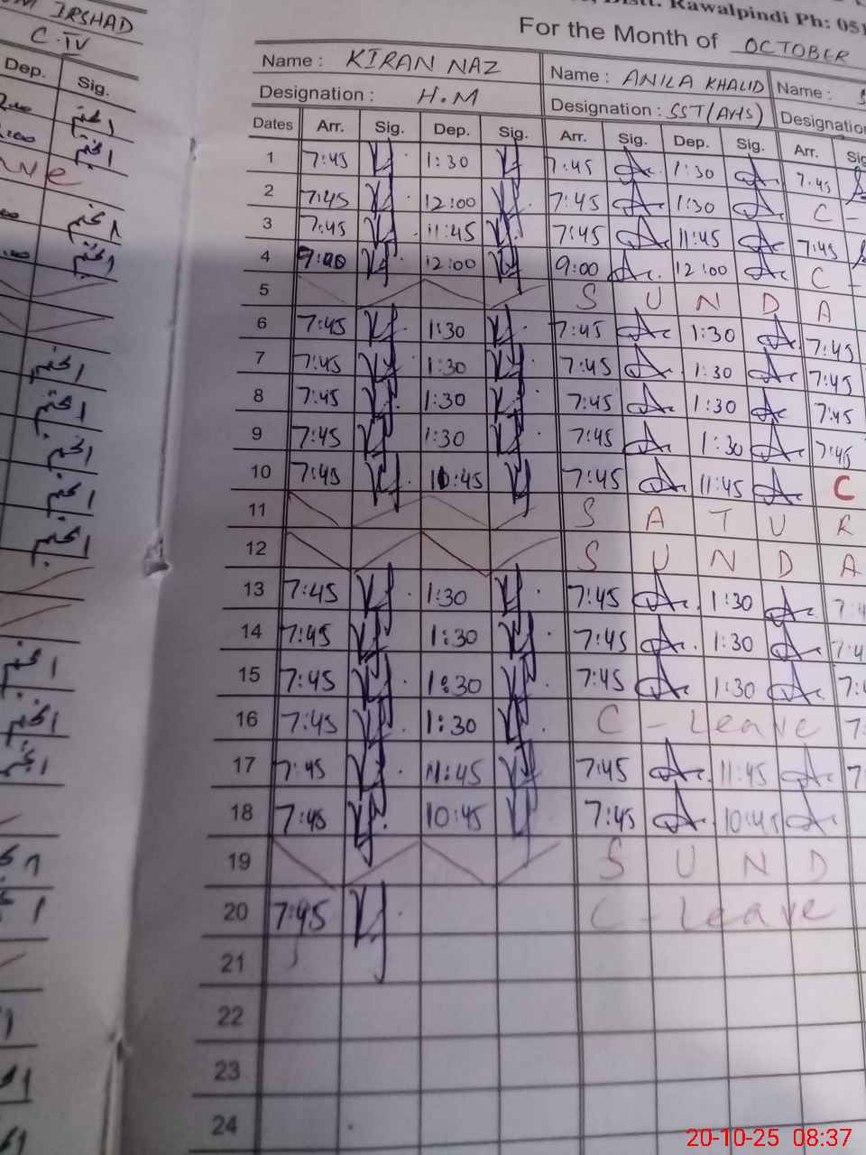 | 37**** | Sa**** Ki**** | EST | Regular | 0 | 0 | 0 | 0 | 0 | 0 | 0 | 0 | 0 | Absent (Un-Authorized) |