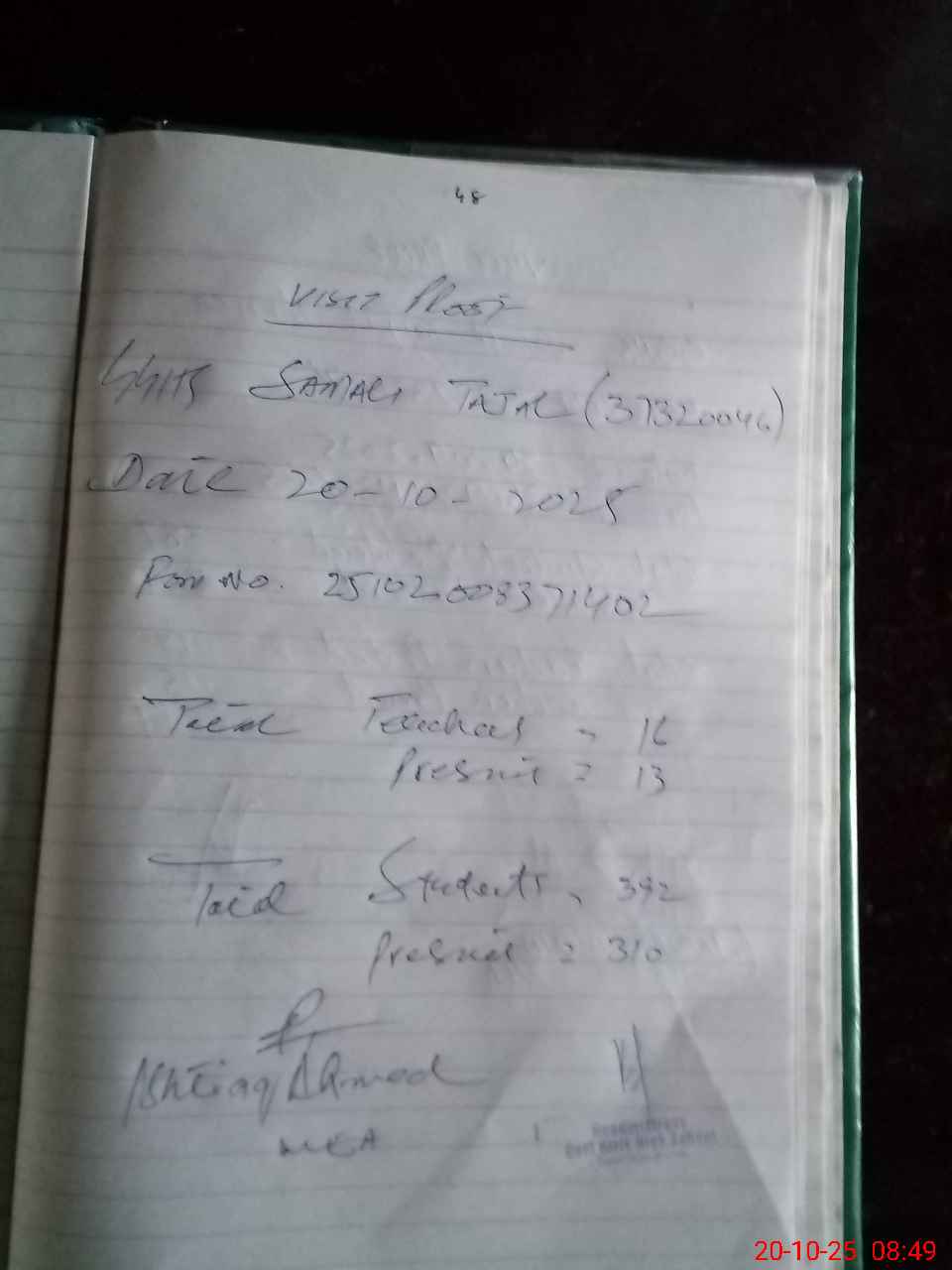 | Remarks (Use Separate Page if Required): Total students are 392 Present students are 310 but in school tab students strength is 387 | |||||
