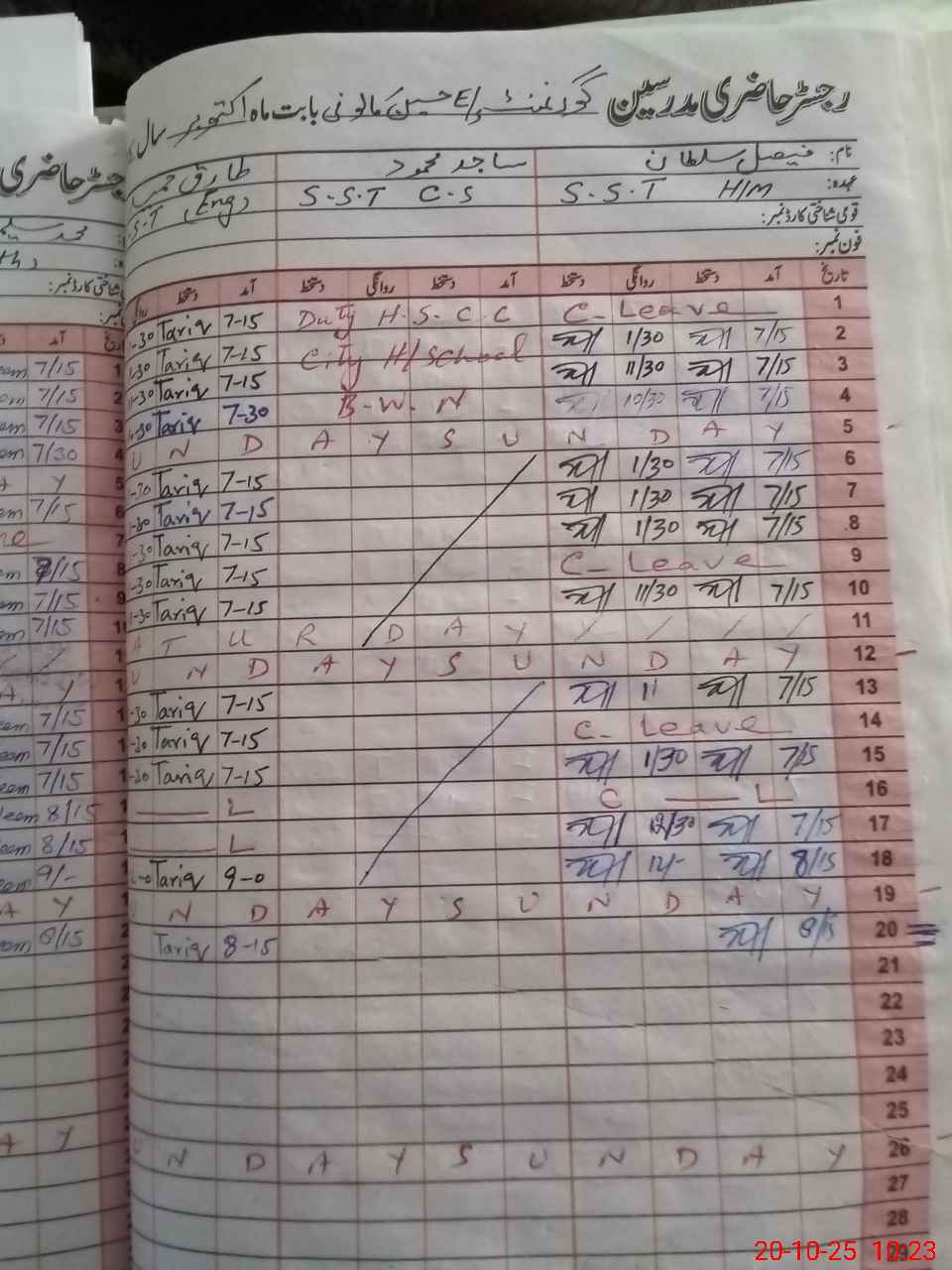 | 31**** | Sa**** Me**** | 1 | 2 | 2 | 0 | 0 | 0 | 0 | 0 | 0 | 2 | Exam Duty | |