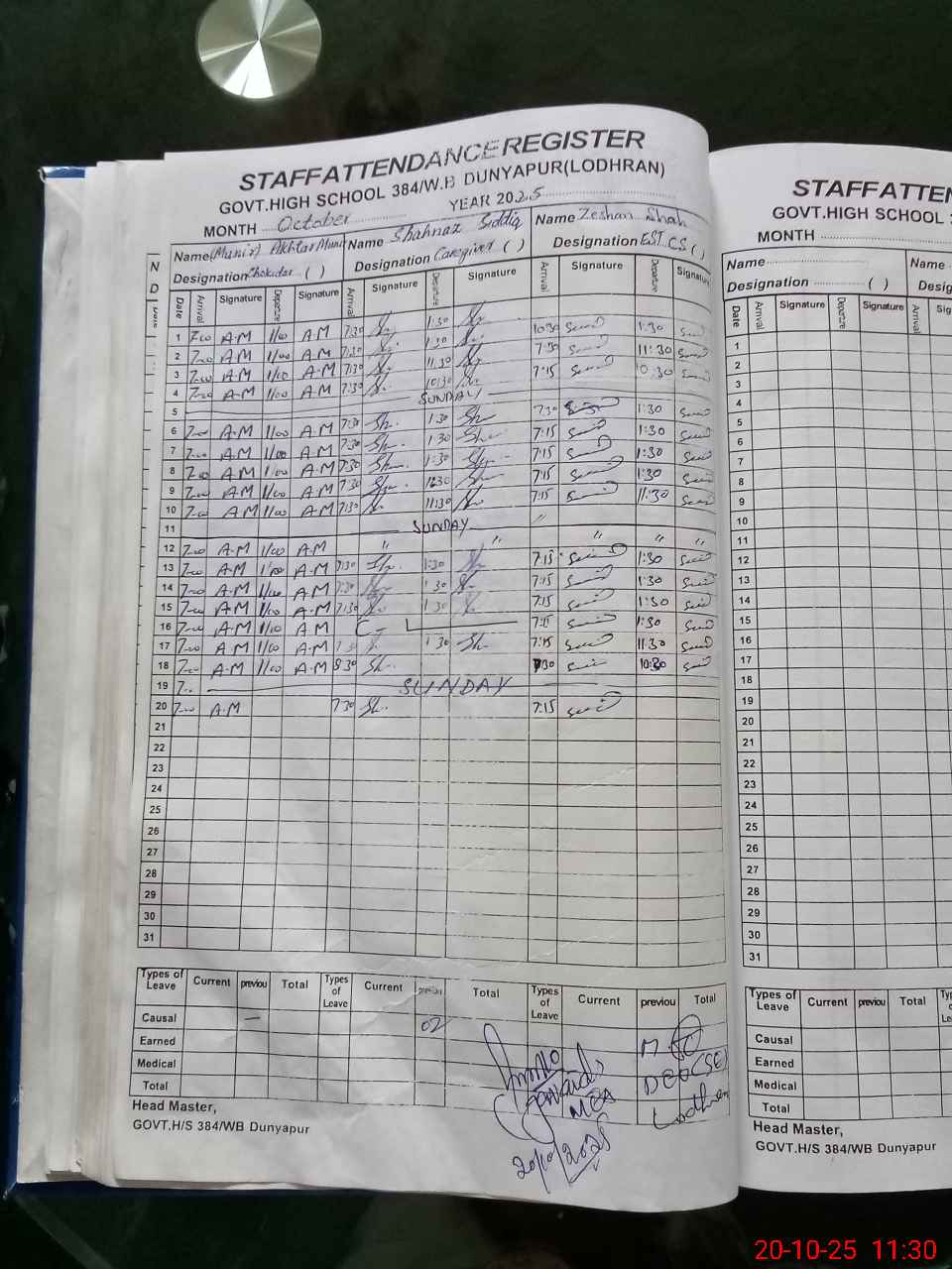 | Monitoring Date: 20-10-2025 | Start Time: 20-10-2025 10:58 AM | End Time: 20-10-2025 11:33 AM | Name of MEA: MU**** JA**** AK**** | |