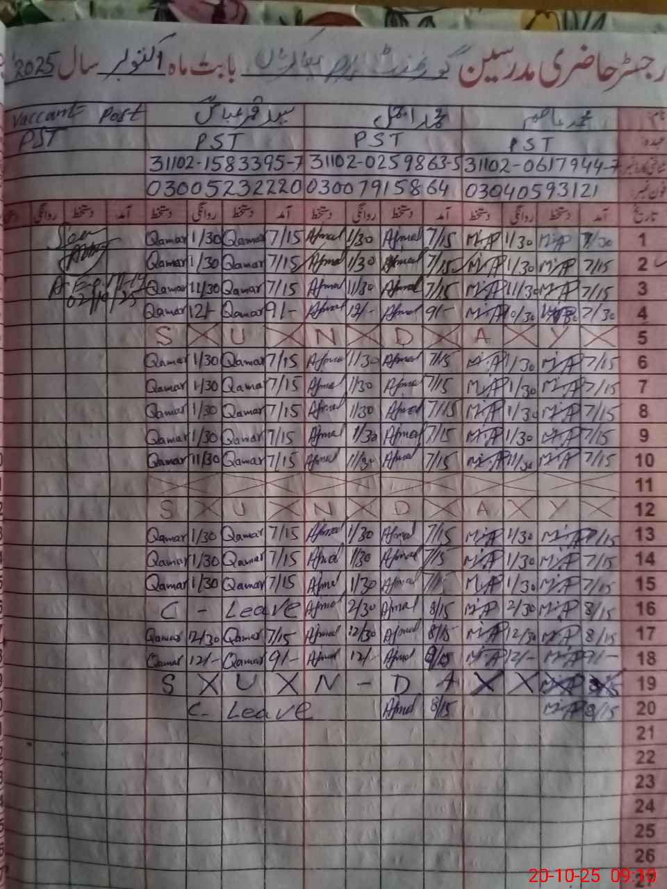 | 31**** | Sy**** Qa**** Ab**** | PST | Regular | 0 | 0 | 0 | 0 | 0 | 0 | 0 | 0 | 0 | Casual |