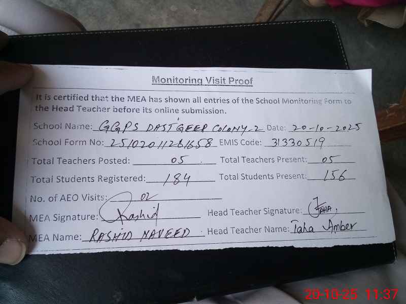 | EMIS Code: 31330519 | Name of School: GGPS DASTGEER COLONY NO. 2 | |||