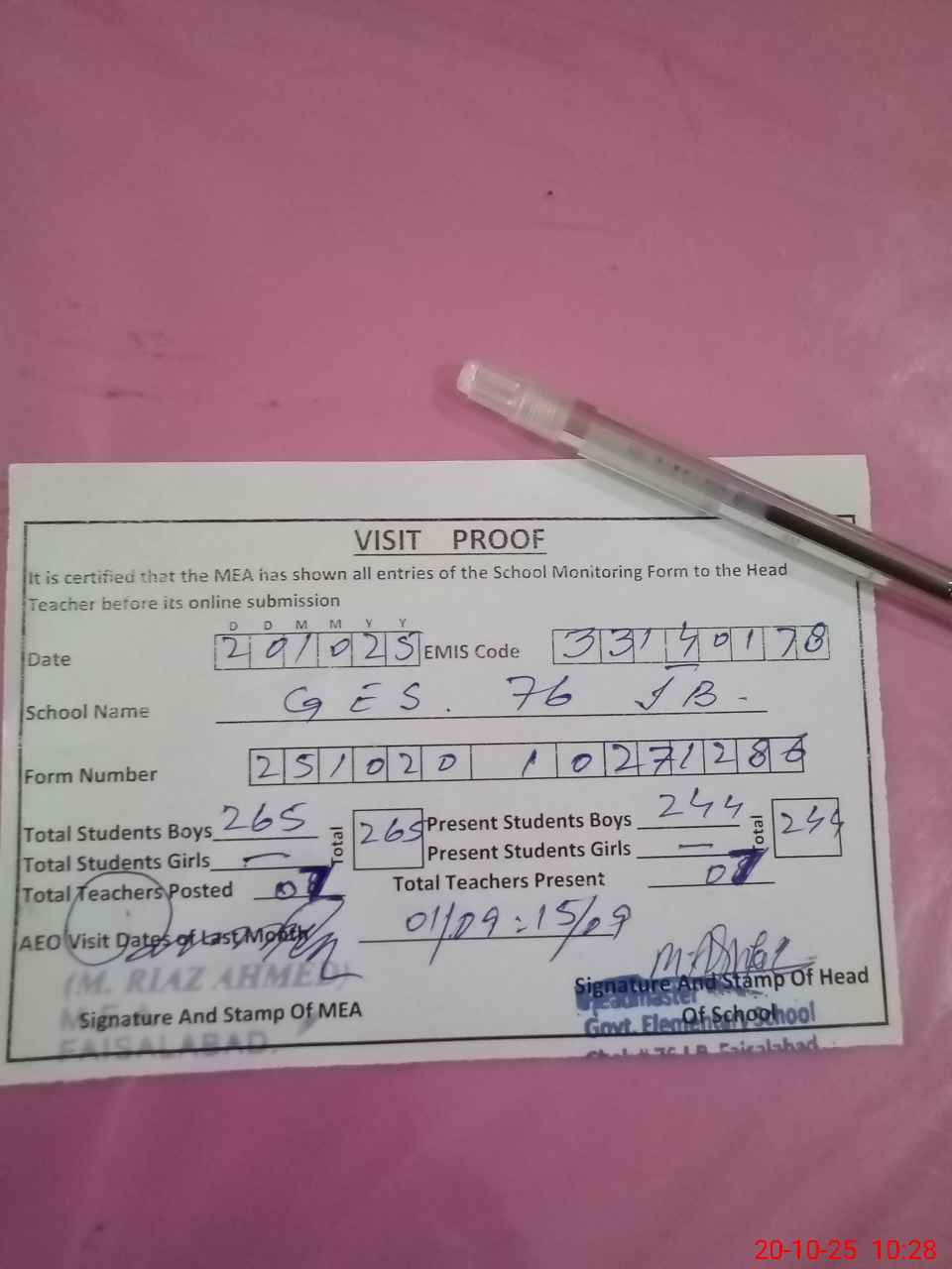 | EMIS Code: 33140178 | Name of School: GES CHAK 76 JB | |||