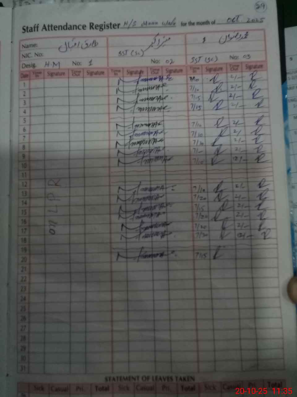 | 36**** | Ja**** Iq**** Za**** | EST | Regular | 0 | 0 | 0 | 0 | 0 | 0 | 0 | 0 | 0 | Exam Duty |