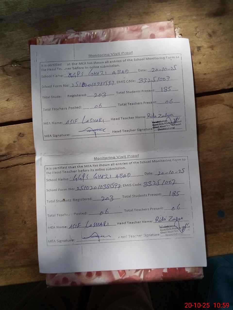 | EMIS Code: 33251007 | Name of School: GGPS GHAZI ABAD | |||