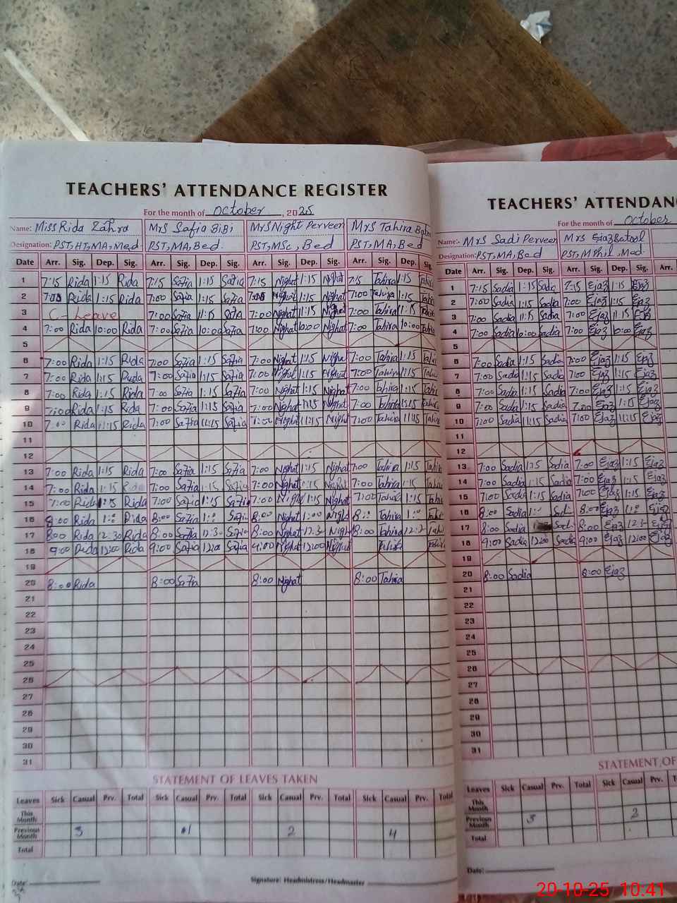 | Leave | Duty | Absent | Maternity | Medical | Ex- Pak |