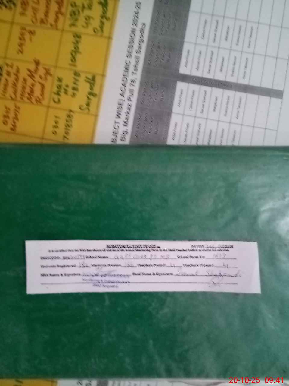 | Attendance Register | Head Teacher | MEA with School | Visit Proof |