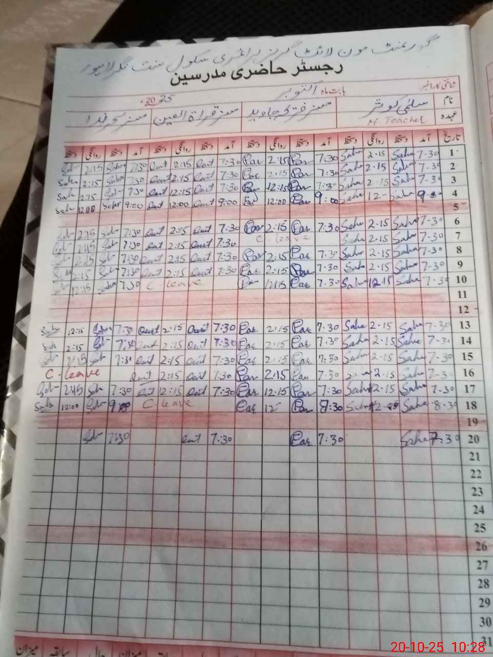 | 35**** | Na**** Ah**** | SG | 0 | 0 | 30 | 0 | 0 | 0 | 0 | 0 | 0 | Absent (Un-Authorized) | |
