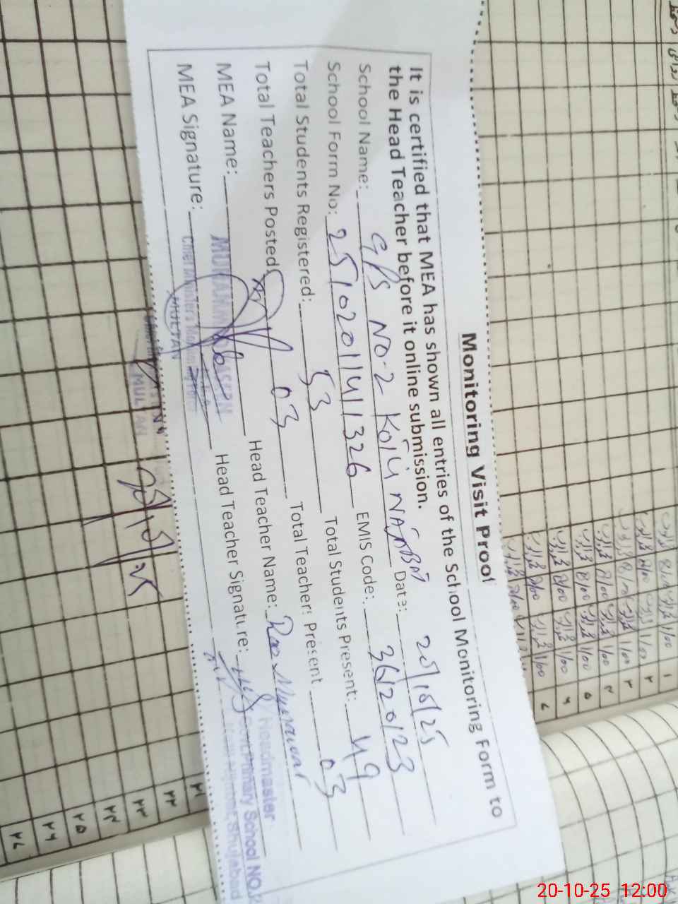 | EMIS Code: 36120123 | Name of School: GPS NO. 2 KOTLI NIJABAT | |||