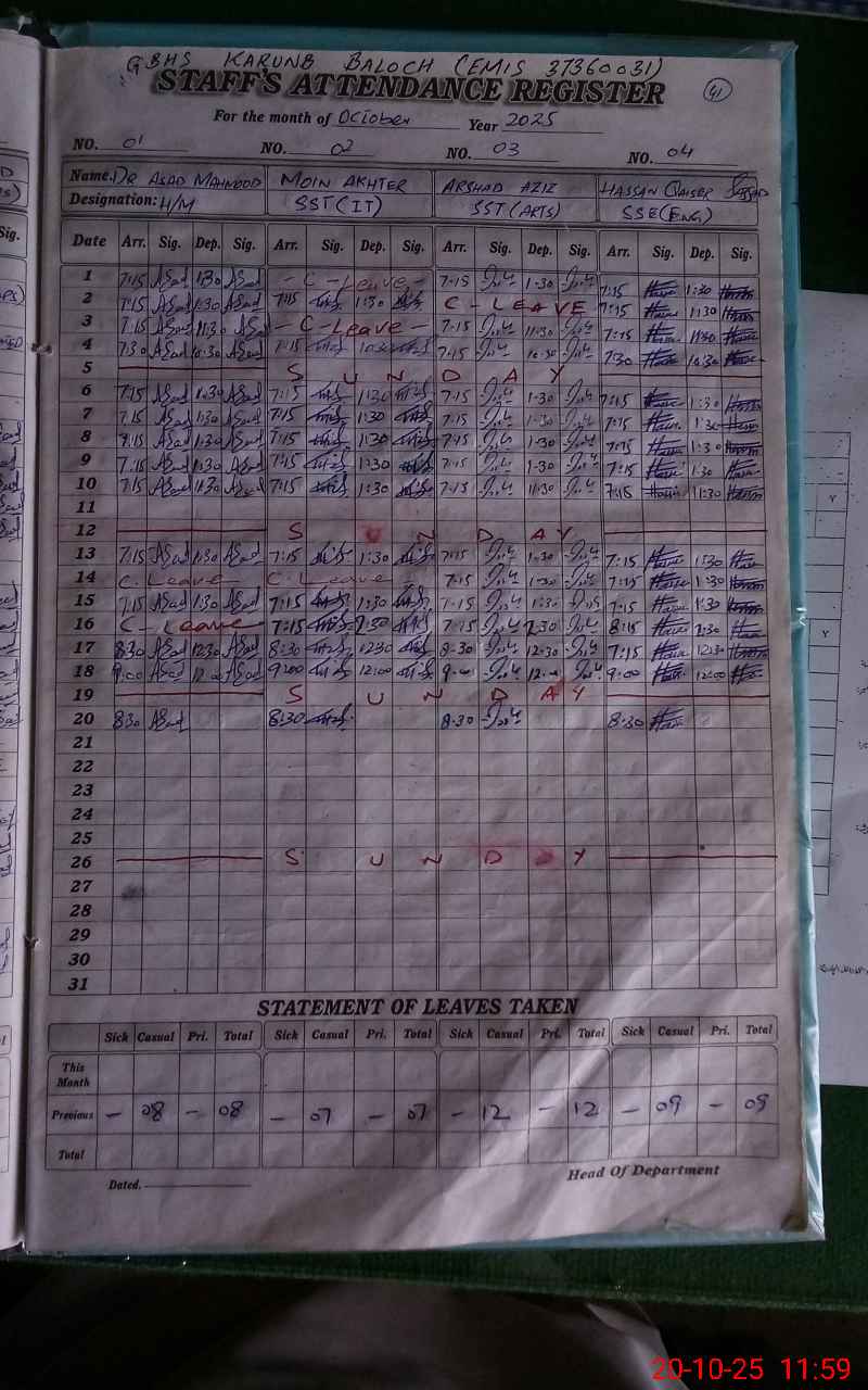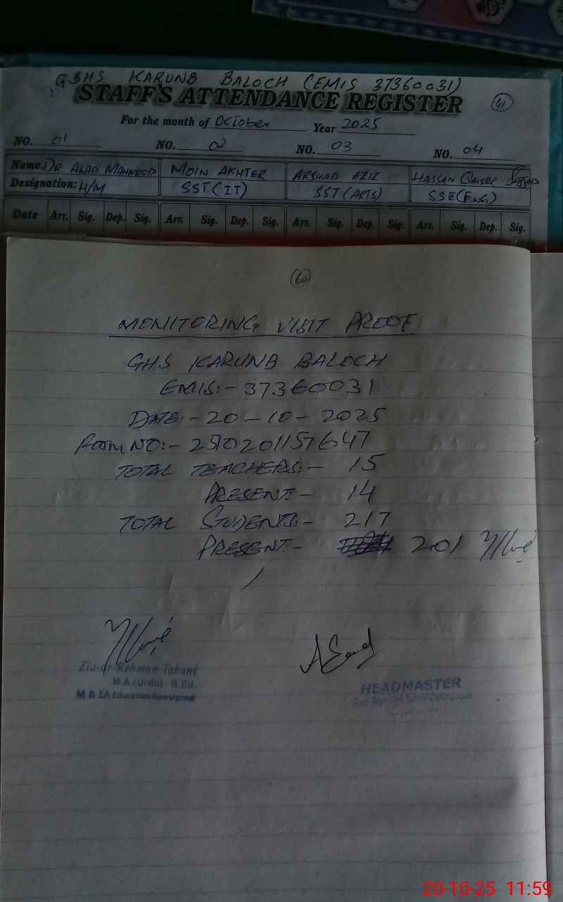 | EMIS Code: 37360031 | Name of School: GHS KARNUB BALOCH | |||
