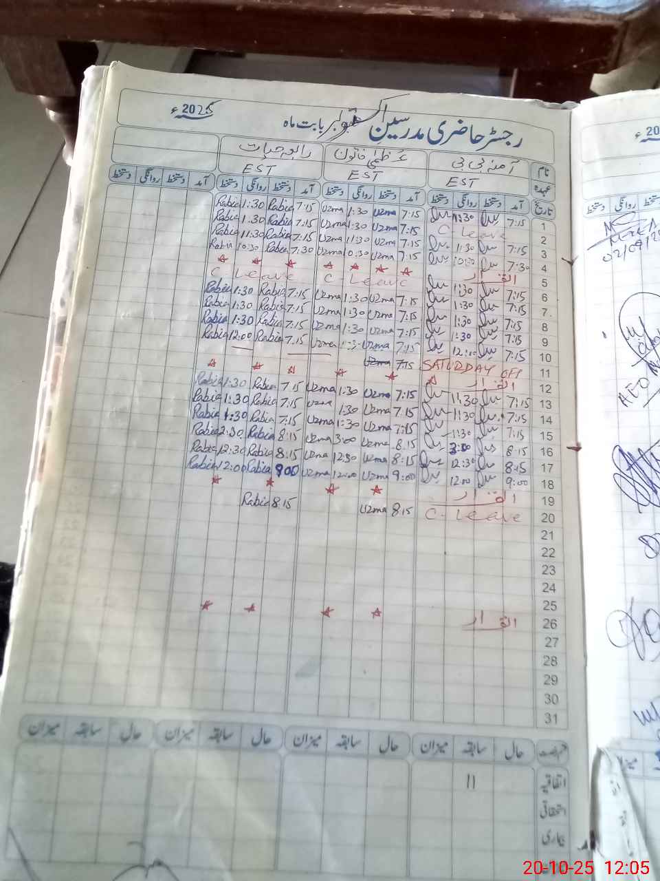 | 37**** | Ah**** Na**** Qa**** | EST(GENERAL) | Temporary | 0 | 0 | 0 | 0 | 0 | 0 | 0 | 0 | 0 | Casual |