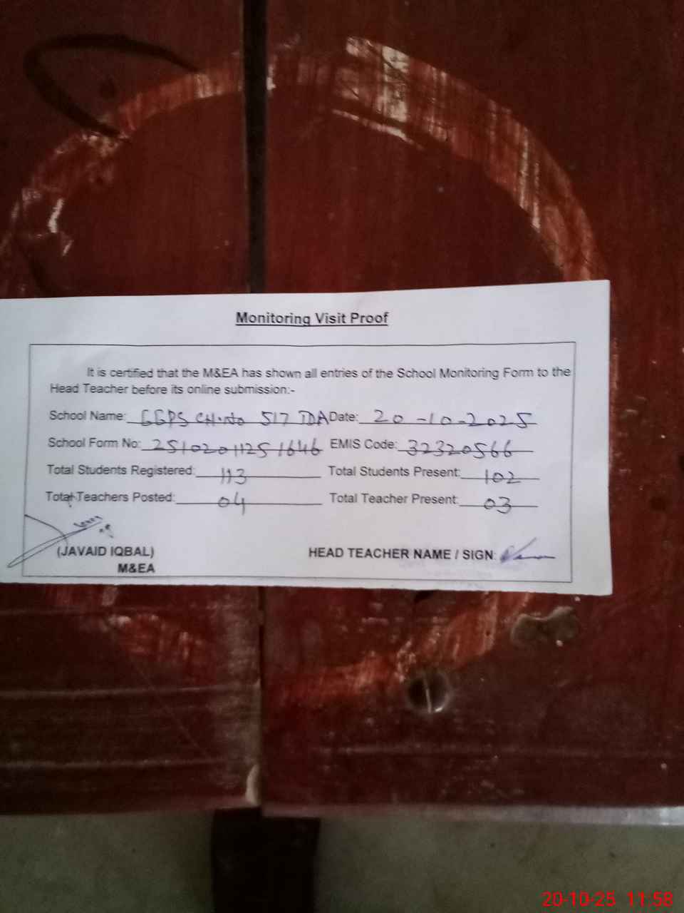 | EMIS Code: 32320566 | Name of School: GGPS CHAK NO. 517/TDA | |||