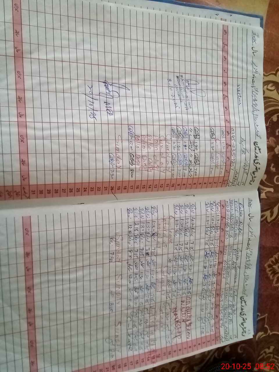 | Leave | Duty | Absent | Maternity | Medical | Ex- Pak |