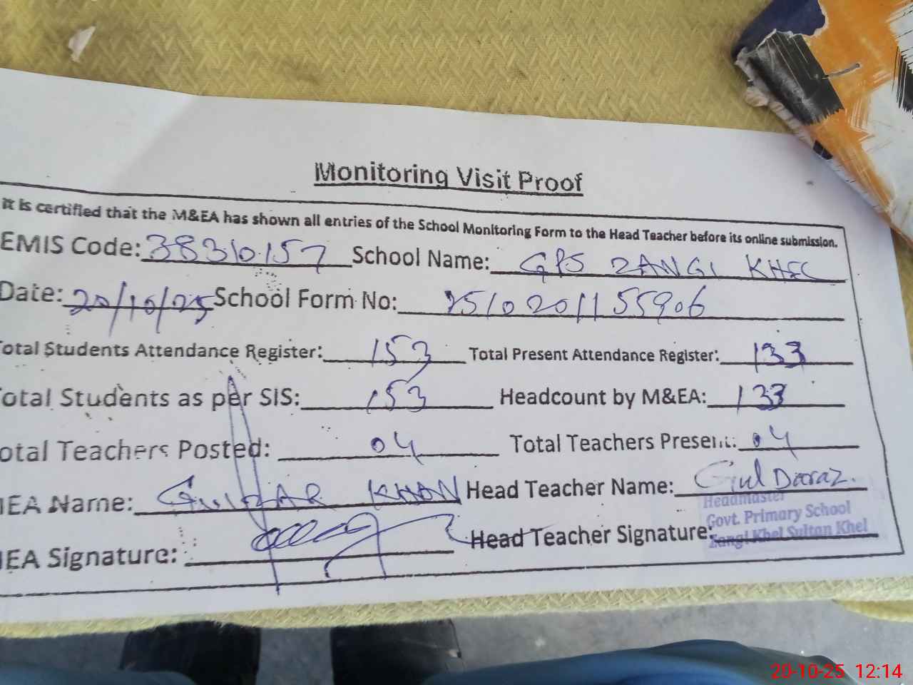 | EMIS Code: 38310157 | Name of School: GPS ZANGHI KHEL | |||