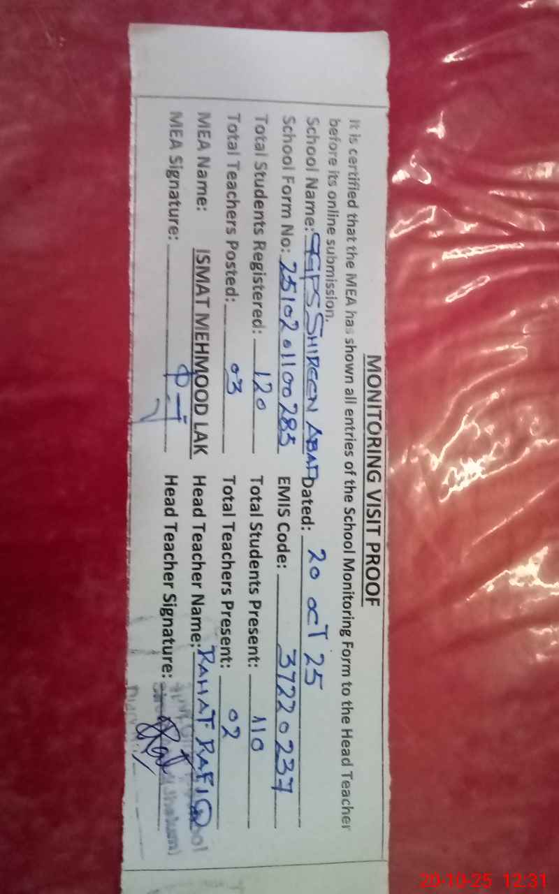 | EMIS Code: 37220237 | Name of School: GGPS SHIREEN ABAD (DANDOT RS) | |||