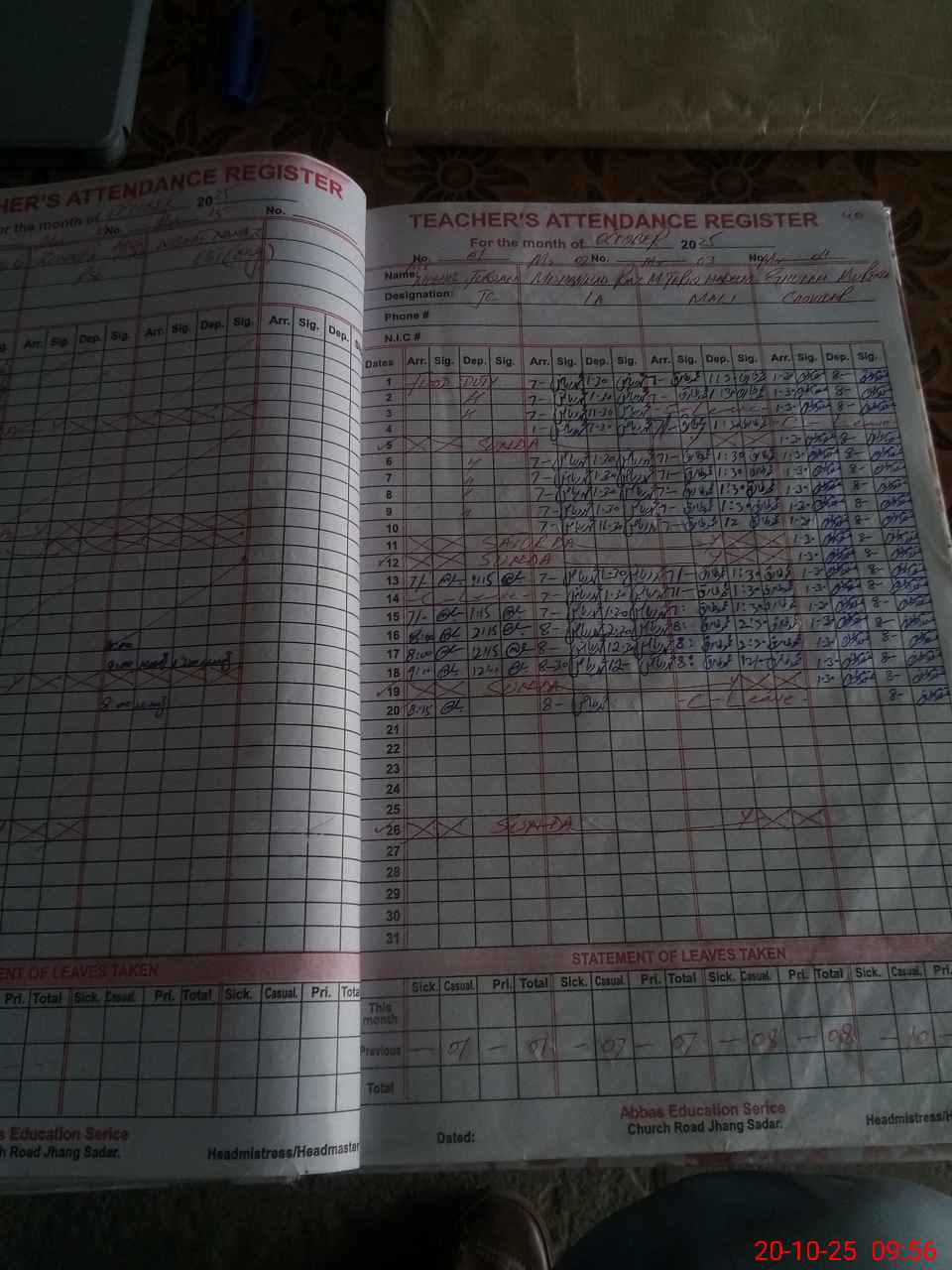 | 33**** | Zu**** Aa**** Ri**** | PST | Regular | 0 | 0 | 0 | 0 | 0 | 0 | 0 | 0 | 0 | Absent (Un-Authorized) |