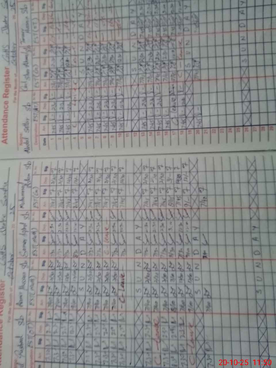 | CNIC | Full Name | Designation | R/C | Absence During Last Calender Month |