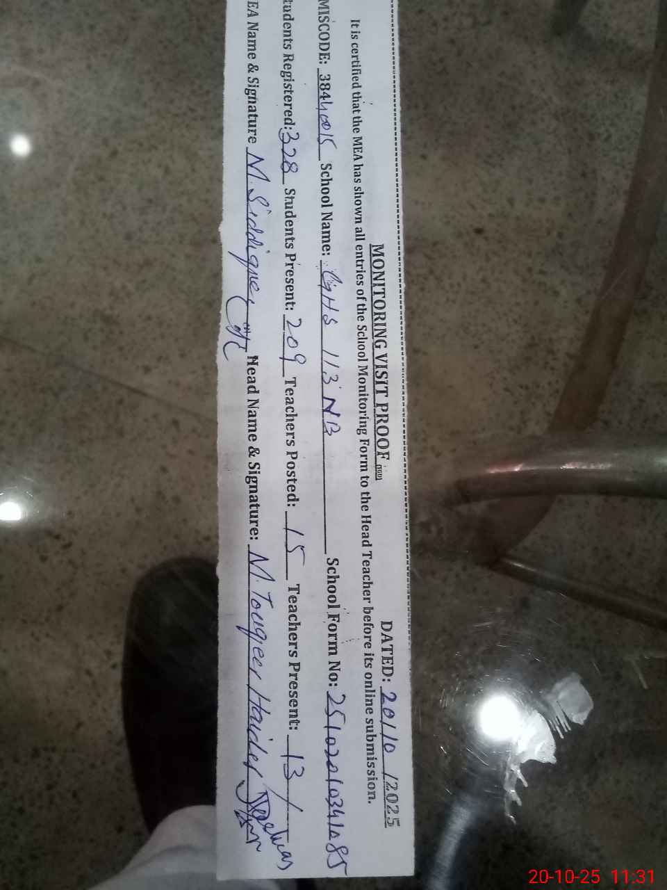 | EMIS Code: 38440015 | Name of School: GHS CHAK NO.113 NB | |||